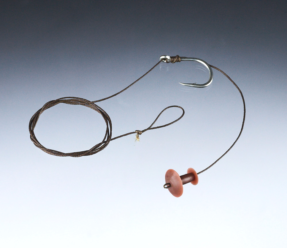 in der Strömung einsetzen. Am Haar werden große Pellets oder Boilies befestigt.