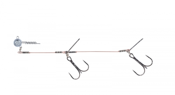 Die Spirale einfach in den Gummifisch / Shad drehen und die Spikes mit den Drillingen in den Bauch stecken, fertig!