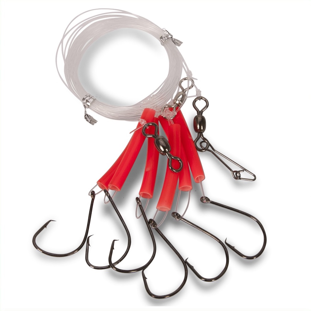 Ein ca. 6,00 m langes Rotbarsch-System mit 6 Circle Hooks gebunden an Monofilschnur.