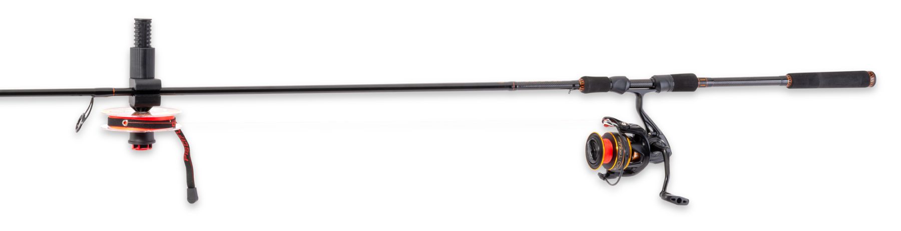 Revolutionäres Schnurspulgerät mit dem Sie überall und sehr schnell Ihre Angelrolle bespulen können.