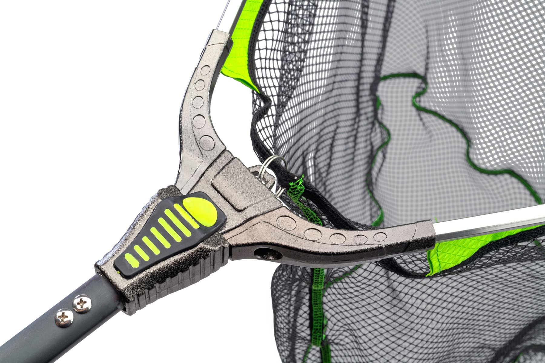 Kescherstange, Rahmen und Schrauben zur Arretierung der Länge, sind aus hochwertigem Aluminium gefertigt.